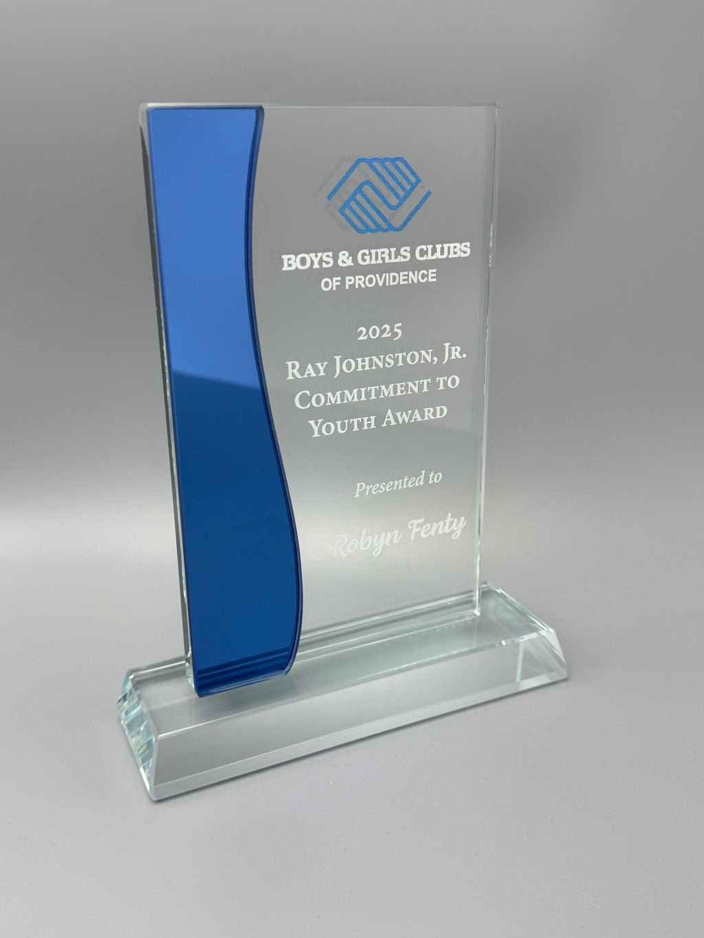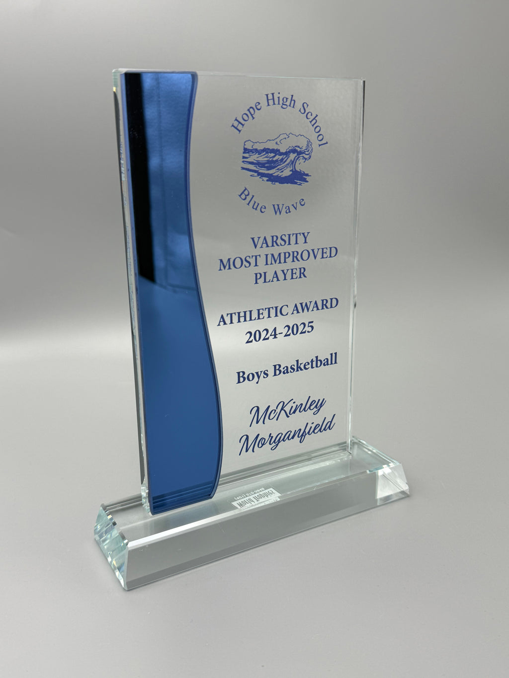 The economy version "little brother" to one of our best selling crystal pieces ! Enjoy the style and design at a budget price for glass. Your logo and text prominently printed on the front of the glass. Available in two sizes.